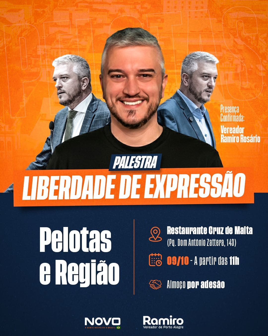 Para aprofundar essa discussão, o vereador de Porto Alegre Ramiro Rosário estará em Pelotas, conduzindo uma palestra para os filiados e simpatizantes do Partido NOVO sobre os desafios, os limites e a importância da liberdade de expressão para a construção de um país verdadeiramente livre.