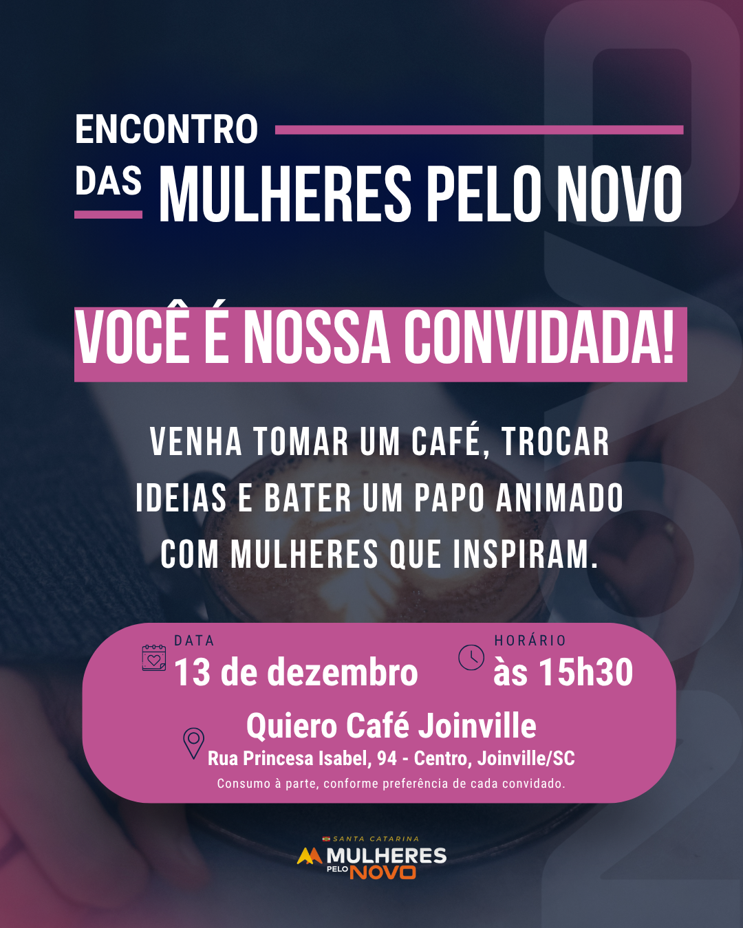 Temos o prazer de convidá-las para um momento de confraternização muito especial! Estamos quase no fim de 2025, um ano cheio de desafios e é hora de celebrarmos nossa união, nossas conquistas e fortalecer ainda mais os laços que nos conectam. Vamos nos encontrar para um café simples, singelo, mas de coração, em Joinville, no estilo: cada um paga o seu.