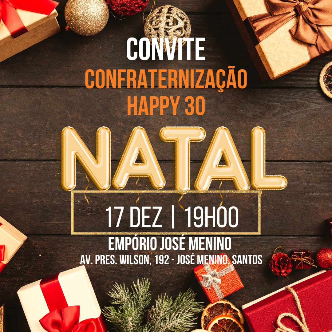 Tivemos um ano de muito trabalho e dedicação, então nada mais justo do que comemorar esse ano tão produtivo e todos os objetivos alcançados, por isso convidamos você para nossa CONFRATERNIZAÇÃO HAPPY30 DE NATAL.