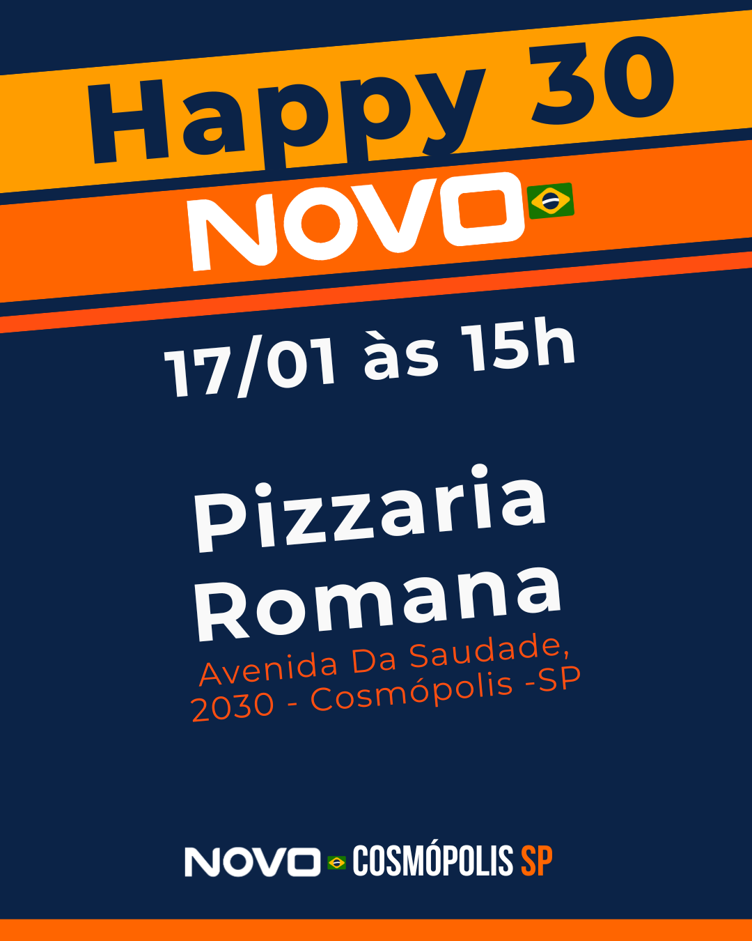 Será no dia 17 de janeiro de 2026, às 15h, na Pizzaria Romana (Av. da Saudade, 2030 — Cosmópolis/SP).