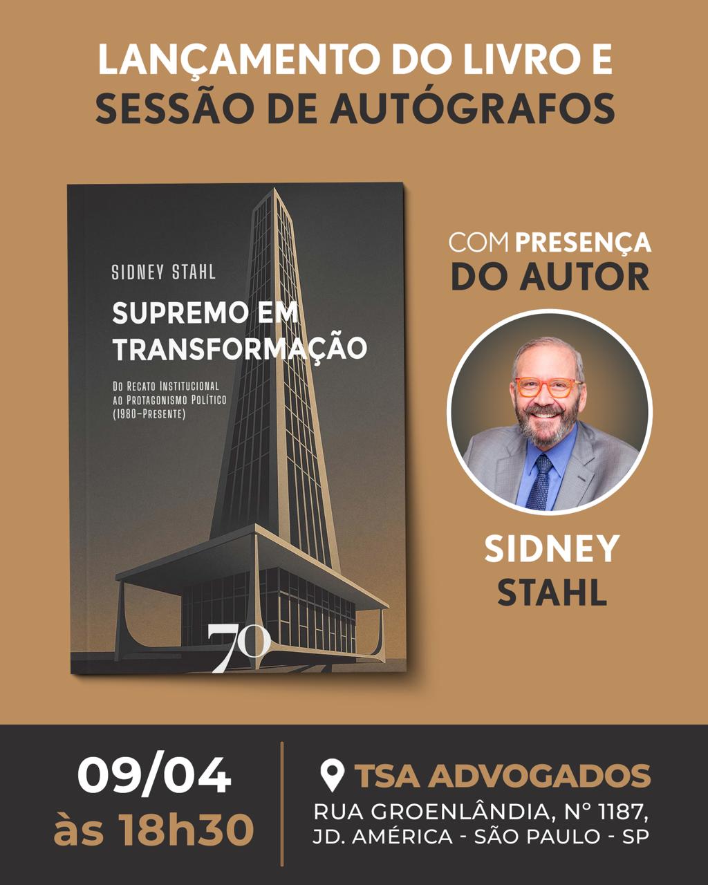 No dia 09/04, a partir das 18h30, acontecerá o lançamento do livro “Supremo em Transformação”, com sessão de autógrafos.