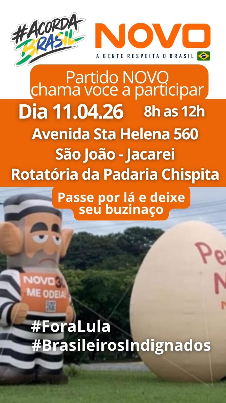 2.a mobilizaçao com pixuleco em Jacarei -SP , organizado pelo núcleo Jacarei com participacao de voluntarios NOVO do vale do paraiba .