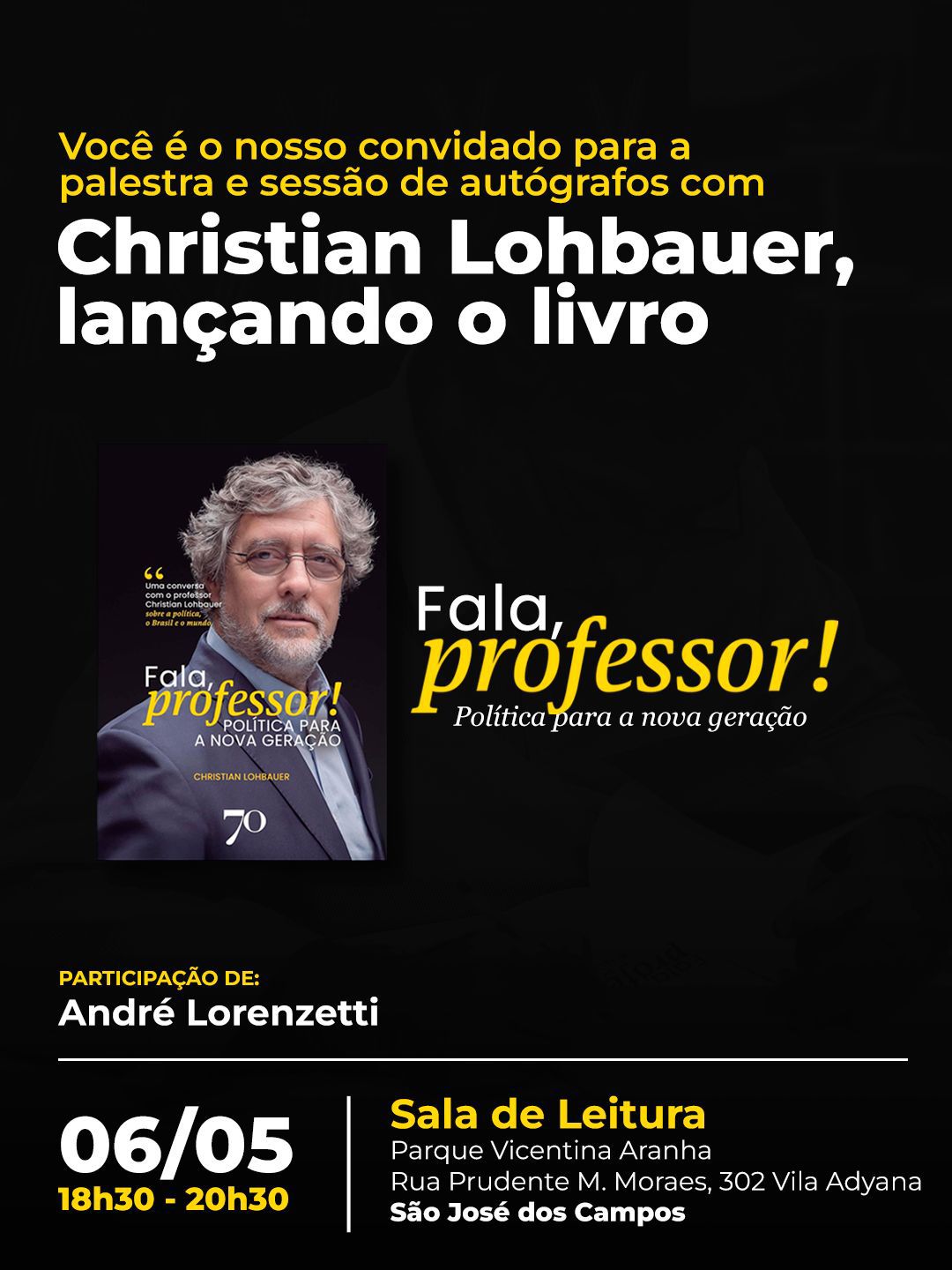 Lançamento do Livro: Fala, Professor! Política para a nova geração, com Prof. Christian Lohbauer