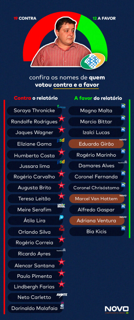 Confira abaixo a lista do posicionamento de cada congressista e qual foi o papel fundamental do NOVO, que votou 100% a favor do relatório da oposição, para desvendar o escândalo do INSS!